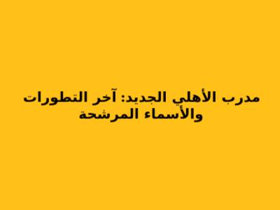 ملف مدرب الأهلي الجديد لا يزال مفتوحًا، والإدارة تبحث عن المدرب الأنسب لقيادة الفريق في المرحلة القادمة. هناك عدة أسماء مطروحة، والإدارة تقوم بتقييمها بعناية. من المهم للجماهير أن تتحلى بالصبر، وأن تثق في قدرة الإدارة على اتخاذ القرار المناسب. الخطوة التالية هي الإعلان الرسمي عن المدرب الجديد، وهو ما ينتظره الجميع بفارغ الصبر.